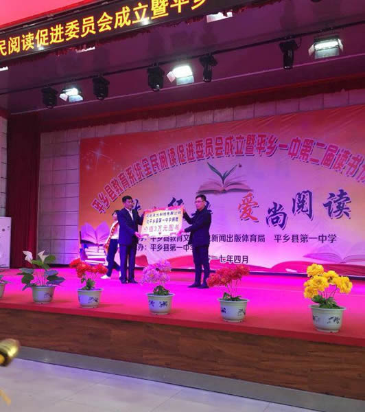 公司參加由平鄉(xiāng)縣教育文化新聞出版體育局和平鄉(xiāng)縣第一中學聯(lián)合舉辦的愛尚閱讀活動,并向平鄉(xiāng)縣第一中學捐贈價值三萬元的圖書。